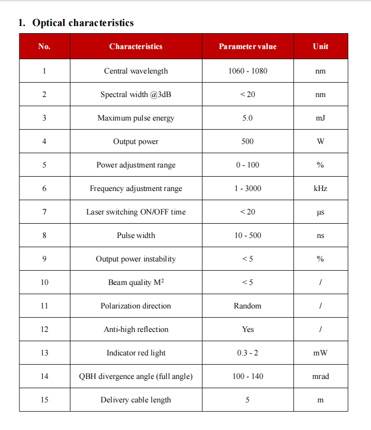 Below parameters are our GMC Series 500W Power MOPA Fiber Laser Source ( YFPN-500-GMC-S2) datasheets.